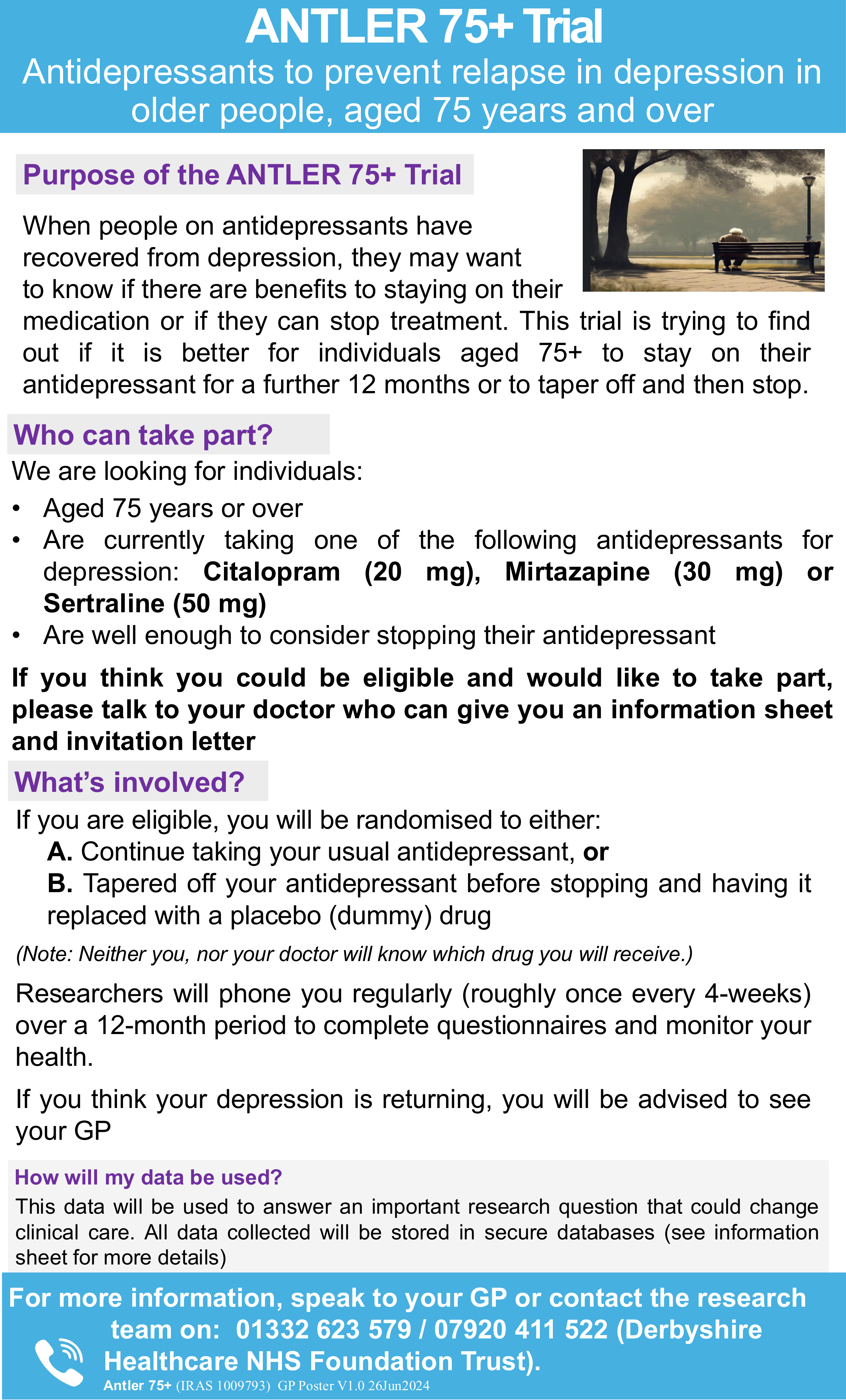 If you think you could be eligible and would like to take part, please talk to one of the doctors who can give you an information sheet and invitation letter